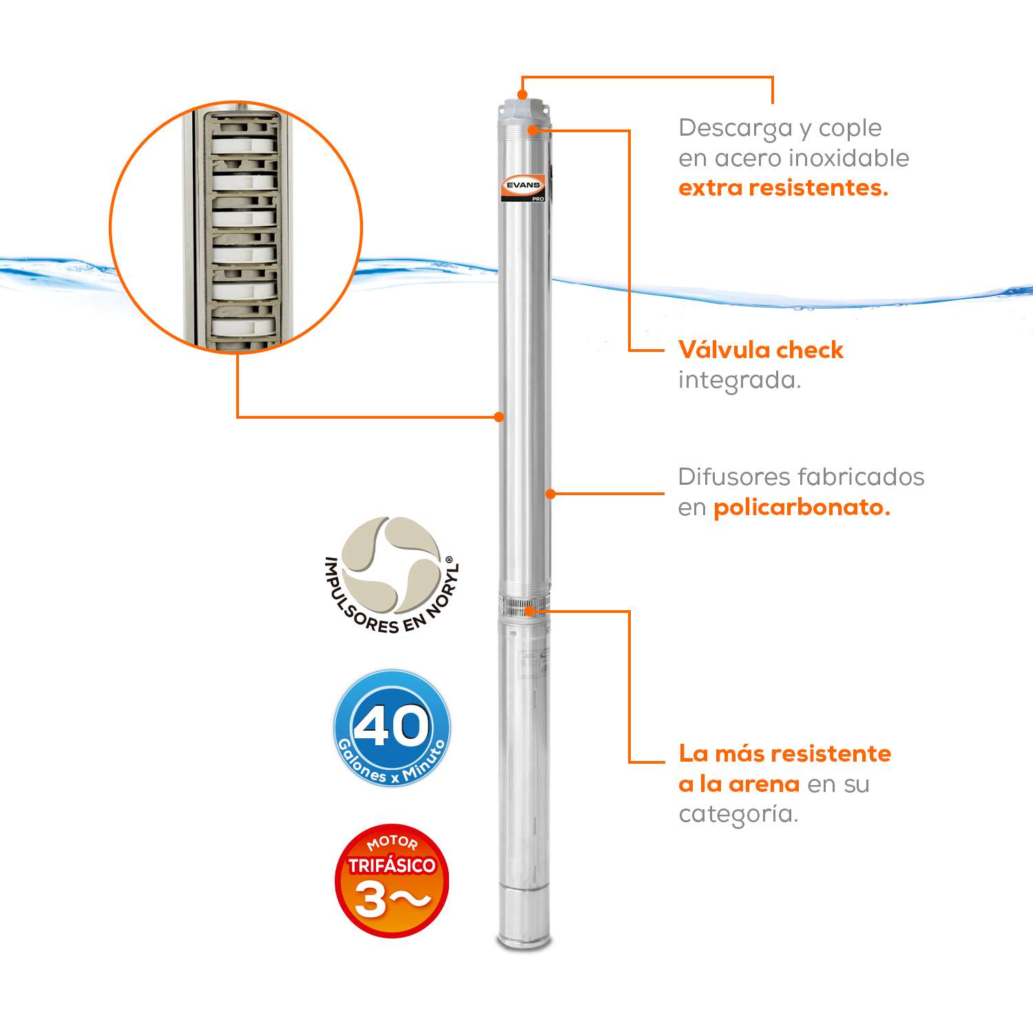 | Material del impulsor: | Noryl |
